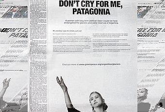 “Una mujer con visión a largo plazo –explicaba Eugenia Testa, directora Política de Greenpeace Argentina– no pondría en riesgo los glaciares y las reservas de agua de la Argentina. El Gobierno está apostando por el carbón como fuente de energía, la peor contribución a la mitigación del cambio climático”. Y añadía: “Argentina debe tener una actitud responsable en materia de cambio climático, tanto en sus decisiones domésticas, como en su reclamo a los países industrializados para que asuman sus responsabilidades”. Greenpeace advertía a la Presidenta que su Administración, “invirtiendo en empleos vedes y promoviendo la energía eólica en la Patagonia, tiene la oportunidad de generar un suministro eléctrico limpio, eficiente, moderno y descentralizado”.