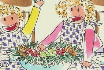 Y ha puesto sobre la mesa los platos. Tina y Leo se han quedado muy asombrados al ver que la ensalada tenía forma de flor. Tomatitos rojos en el centro y hojas verdes como si fueran pétalos. Los mellizos estaban intrigados.