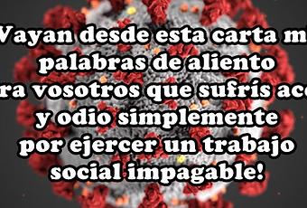 Vayan desde esta carta mis palabras de aliento para vosotros que sufrís acoso y odio simplemente por ejercer un trabajo social impagable y que os llega de esa gentuza como bilis de perros rabiosos, incapaces de buenos sentimientos a pesar de que sois dignos de respeto y agradecimiento sin límites. Cuando a las 8 salgo a la ventana para aplaudir a nuestros excelentes y sufridos sanitarios incluyo, mentalmente, a millones de personas que me facilitan la vida desde múltiples puestos de trabajo. Salir de casa hoy, para ganarse la vida honradamente, presupone una gran dosis de valentía y olvidar que el contagio del virus no respeta edad.
