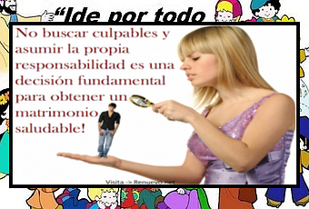 No buscar culpables y asumir la propia responsabilidad es una decisión fundamental para obtener un matrimonio saludable!Lucas 6:42 ¿O cómo puedes decir a tu hermano: “Hermano, déjame sacar la paja que está en tu ojo”, no mirando tú la viga que está en el tuyo? Hipócrita, saca primero la viga de tu propio ojo y entonces verás bien para sacar la paja que está en el ojo de tu hermano.