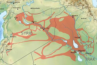 Extensión máxima ocupada del Estado Islámico en Oriente Medio.