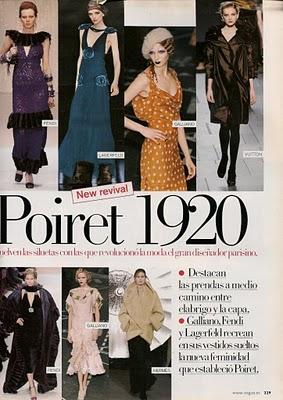 Y como decimos siempre, los diseñadores más actuales se inspiran en épocas pasadas y logran reinterpretarlas a la luz de nuevas tendencias y estilos, pero manteniendo la impronta del período. En Vogue España Colecciones temporada otoño-invierno 2005/06 podemos ver cómo el estilo de Poiret fue retomado por varios creadores...