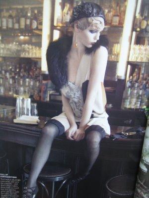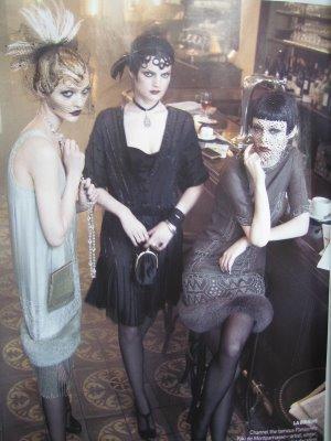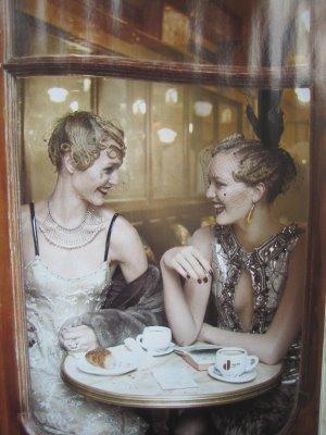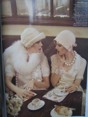 Y en la que ya se ha convertido en una edición clásica, Vogue EE.UU. dedicó su número de septiembre 2007 al París de aquella época: a las chicas Flappers, a las sras. parisinas que recorrían los parques y paseos, a las jóvenes "modernas" que compartían secretos en el café, a las damas de la noche... Se trata de una producción que cautiva y que en cada toma refleja al París de entonces, el Art Nouveau, la vida nocturna y el glamour de una sociedad que estaba a la vanguardia de la cultura y estilo. Para quiénes ya la vieron y para las que no, he aquí parte de esa nota...
