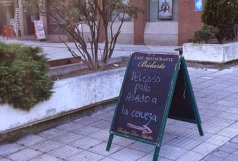 Es un poco absurdo que miré este cartel ya que soy alérgico al pollo...pero que quieren que les diga... yo leo pollo asado y me entra el hambre. Pero lo que me llamo poderosamente la atención no fue el rico pollo que prometían si no la flecha, ¿por qué?