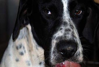 Es uno de los peludos que están en nuestro albergue, y por culpa de las orugas "procesionaria" hemos tenido que bajarlo de urgencia al veterinario, pues estas orugas son muy peligrosas para ellos. Las fotos lo dicen todo, va a perder un trozo de lengua y tendrá q aprender a comer y beber sin ese trocito.