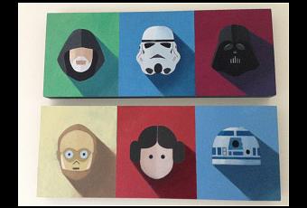 Sin embargo, incoherencias de la vida, luego sucede que unos buenos amigos aparecen en casa, me regalan estos cuadritos y me encanta ver cómo quedan las caras de estos personajes en mi salón. No sé explicarlo, pero siento que, de esta manera, la fuerza me acompaña.