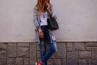 Chanelera / Jacket : MANGO ( NEW ) Camiseta / T-Shirt : MASSIMO DUTTI Jeans : ZARA Bolso / Bag : ZARA ( NEW ) Zapatillas / Sneakers : ALL STAR CONVERSE (NEW ) Pulseras / Bracelets : ZARA ( NEW ) / MASSIMO DUTTI / GUCCI Colgantes / Hagning : H&M Gafas / Sunglasses : KAPPA Esmalte de uñas / Nail polish : DIOR