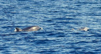 Delfín mular (Tursiops truncatus)Los enormes delfines mulares no estuvieron tan sociables como los listados y parecían un poco nerviosos.Los dejamos tranquilos.
