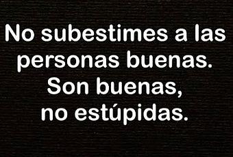 No puedes ser amable con alguien en este cochino mundo porque creen que eres ingenuo o gustas de el, es una lastima que por ser amable las otras personas crean que pueden sacar provecho abusivamente de ti, traten de estafarte de una u otra manera y sobre todo actúen como verdaderos pendejos contigo, no se si nos criamos en un entorno donde ser buena persona es un completo sacrificio o en donde desconfiar es la costumbre de cada día para sobrevivir.Independientemente de como te hallas creado ten algo en cuenta: "las buenas personas no son estúpidas", no las subestimes ni creas que porque te han tendido una mano puedes aprovecharte de ellas, hay miles de buenas personas que o son rencorosas con quienes sacan lo peor de si o nunca perdonan si abusan de ellas, si una buena persona prospera es precisamente porque su actuar le ha abierto puertas, puertas que tu vas a cerrarte si obras mal con ella.Estúpido es quien confunde amabilidad con coqueteo, debilidad e ingenuidad, estúpido es quien piensa solo en lastimar a quien le tiende la mano, no quien obra bien, es decente y amable, porque cada quien recoge lo que ha sembrado, cada quien es medido con la vara con que mide, no esperes buenos resultados si te la pasas orando mal.