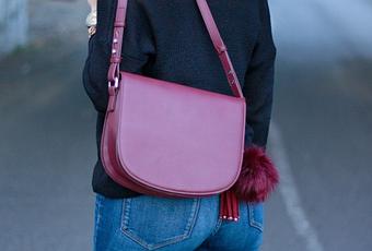 Cada vez me siento más atraída por líneas minimalistas, por cortes rectos y patrones sencillos. Este bolso de Mango no tiene nada especial pero a la vez lo tiene todo, me gusta su simplicidad, tan sólo decorado con un broche con flecos y un pompón. De color granate, elegante, formal y femenino.