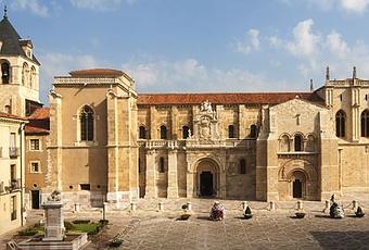 A orillas del río Bernesga, este monasterio se ha convertido en un lujoso hotel Parador. Esta excepcional atracción ha acogido a los visitantes desde el siglo XII. Cuando los peregrinos se detuvieron aquí en su camino a Santiago de Compostela. El monasterio formaba parte de la Orden de Santiago. En el siglo XVI, los Reyes Católicos comisionaron un nuevo edificio para el monasterio en estilo plateresco español. Observa la riqueza y delicadeza de las decoraciones escultóricas en la fachada. Encima de la entrada principal está una figura barroca de Santiago en su papel legendario como matador de moros. En el extremo oriental está la iglesia de San Marcos consagrada en 1541.