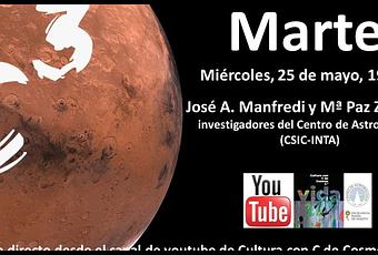 Pueden pasarnos sus preguntas a través del chat de youtube. José A. Manfredi y Mª Paz Zorzano, investigadores del Centro de Astrobiología, responderán a sus preguntas desde el canal del proyecto " Cultura con C de Cosmos ", que ha organizado una serie de cuatro directos (este es el último). Y yo tengo el honor de presentar y moderar.