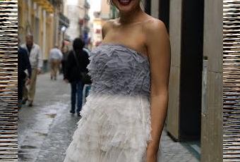 Éste es el vestido más bonito jamás soñado. Palabra de honor, en tul de color degradado. Largo media pierna con los bajos en rosa empolvado. Y lo hay en más tonos. Y se le puede poner un fajín también. Es de Traffic People.