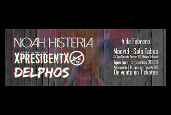 Por un lado tenemos a Noah Histeria dando guerra con un 2017 que se presenta con muchas sorpresas, conciertos y con canciones para disfrutar y tener en la retina para la posteridad, de la misma manera quieren partir de este show en Madrid con buenas sensaciones. XpresidentX es otra de las bandas, un torbellino sonoro con muy buen sonido, mejores letras y una gran capacidad para impresionar; al igual que Delphos, que vuelven a los escenarios con una imagen y un estilo de música renovados tras estar apartados de los escenarios.