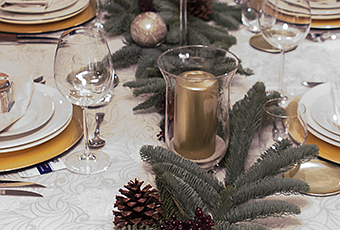 Las ramas de Pinsapo, han sido el elemento protagonista de este año en las dos mesas. Dándole un toque natural y aroma a las mesas, junto a piñas, bolas de Navidad, y algunos adornos para aportarles un toque de color.
