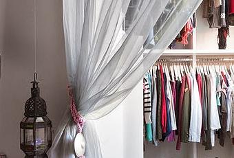 Como si de las mil y una noches se tratara, entramos a este maravilloso dormitorio juvenil que ha sido invadido por el encanto marroquí. Sobre las tonalidades blancas y grises, una multitud de faroles colgantes hacen su maravillosa presencia. Un espacio cómodo y funcional en el que se ha añadido un vestidor y un tocador, ambos unidos a la zona de noche mediante unas cortinas vaporosas, sujetas con la preciada pasamanería que con tanto aprecio se trabaja en Marruecos. Orden, armonía y unos detalles muy bohemios nos enamoran, entre ellos, el kilim de seda sobre el que descansan las babuchas de la joven. Todo un lujo!!! Mi casa ¿Qué os parece la idea de decorar una estancia con varios farolillos colgados a diferentes alturas? Nosotros lo hicimos en la terraza, aunque siempre me ronda la idea de hacer algo similar en el salón...