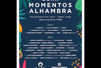 El 26 de junio Ain the machine (Naked on the dance floor) abre para Salvador Sobral, un día después Amaro Ferreiro abre para Iván Ferreiro, el 2 de julio Komraus son los invitados de Daryl Hall & John Oates, el 11 Judith Owen precede a Michael Bolton, un día después Juan Habichuela Nieto hace lo propio con Diego El Cigala, el 14 La Tremendita acompaña a Niña Pastori, el 19 Guacamayo DJ a Orishas y el 31 Rufus T. Firefly (show especial de versiones) comparte cartel con Russian Red. Otra novedad es el horario de apertura de puertas, a las 19:00 a diario. Antes de los conciertos del escenario principal, la Zona Momentos Alhambra recibe al público con una variada programación con DJs como Eva A. & Xabi B. (Eva Amaral y Xabi Blanco), Joaquín Reyes & Adrián LeFreak y artistas emergentes como Chlöes Clue o Embusteros.