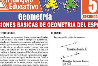 Este material educativo contiene actividades de Nociones Básicas de Geometría del Espacio que ayudaran a los estudiantes de Quinto grado de Secundaria en su aprendizaje. Ahora te mencionaremos algunas de sus actividades: