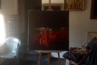 " Nocturno en la Mar Divina "   Óleo espátula lienzo. 2015   100 x 100 cm.   detalles.   Carboneras Almeria España