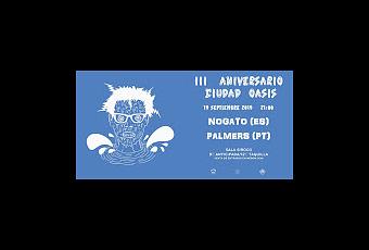 Ciudad Oasis quiere preparar una buena el 19/9 en la Sala Siroco con dos formaciones que den luz y sabor a su fiesta por el III Aniversario. Por un lado, Nogato hará de banda local. El grupo de Madrid formado por Enrique, Micho, Roca y Zumaco y quieren dar la nota. Desde Portugal llegan Palmers, una banda que cuando publica material, da que hablar y ofrece un buen directo. Se les espera en Siroco y en breves darán ese show del que ya se habla.