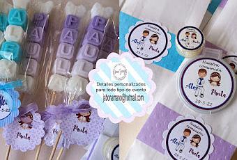 Súper bonitos quedaron los sets de detalles personalizados que preparé para la comunión de estos 2 primos Alex y Paula.