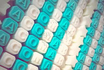 Los nombres en letras de jabón sigue siendo una de vuestras opciones favoritas a la hora de escoger detalles para primera comunión.En esta ocasión el nombre fue realizado en 2 colores,blanco y azul para Acomar y azul medio/azul intenso para el nombre Izan.