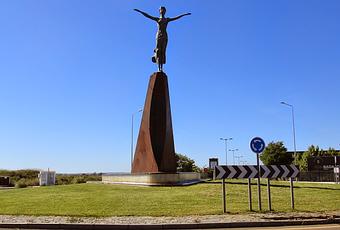 O no digamos el “Monumento de Bienvenida a los Portugueses”, en la entrada a Badajoz desde Elvas, representado por una mujer hierática, con los brazos en cruz y las palmas de las manos hacia abajo. ¡Vaya manera de dar la bienvenida! Si al menos le hubiesen puesto los brazos un poco abombados y las manos con las palmas hacia adentro, podría parecer que iba a abrazar; pero así, más parece que vaya a lanzarse hacia el vacío. No es malo, por tanto, su nombre alternativo: “Rotonda de la Suicida”. ¡Y es que está a punto de saltar hacia el abismo… del asfalto!