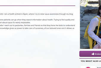 Para los que no sepáis inglés, lo que pongo en mi perfil y que describe lo que hago es, más o menos, lo siguiente: que tengo lupus y que es muy difícil encontrar sitios fiables y fáciles de entender en español en los que se hable sobre lupus. También les cuento a los chicos de Wego que lo que trato de hacer en mi blog es hacer accesible información de calidad sobre lupus, tratamientos e investigación a toda la comunidad hispano parlante. Porque todos, independientemente del idioma que hablemos, tenemos derecho a una información de calidad, verdad? :-)