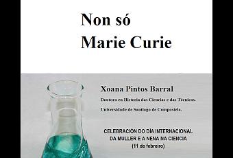 (Xoana Pintos Barral, Doutora en Historia das Ciencias e das Técnicas. Universidade de Santiago de Compostela) do día 14 de febreiro ás 13 h na Aula Magna da facultade de química da USC, dentro do Ciclo de Conferencias “Reactiva a túa Química”, e co gallo da celebración do Día Internacional da muller e a nena na ciencia (11 de febreiro).