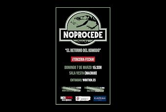 Noprocede ha vuelto a los escenario, ahora van por tres fechas en Sala Vesta de Madrid con muchas sorpresas en su escenario y puesta en escena. Noprocede están de actualidad, en este caso, anuncian tres fechas en la Sala Vesta para el mes de marzo con muchas sorpresas. Llega una serie de fechas en Sala Vesta, en concreto entre el 6/3 y 7/3 encontraremos en tres ocasiones a Noprocede en su escenario. En este caso, queda una fecha disponible, será para el domingo, en su pase a la hora de comer, un pase que será una apuesta más de su capacidad de llevar su directo a muchos escenarios de Madrid.