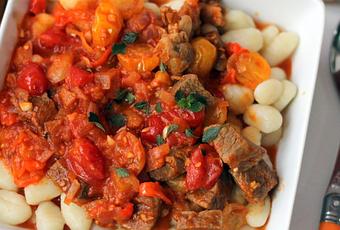 En casa preparamos diversos platos como sopas, guisos, pastas calientes, ya sean boricuas o argentinos como estos ñoquis con salsa roja, que mi esposo y yo preparamos.