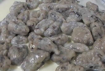 Agrego los champiñons tibios, y los piso con el pisapapas.Pero si queres podes pasar los champiñons por la minipimer junto a los hongos hidratados.Pero yo quería que se vieran pedacitos de hongos en el ñoqui.