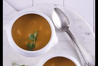 Agregamos a la olla con el caldo de pescado y dejamos cocinar durante media hora. Pasado el tiempo, trituramos el contenido de la olla y lo pasamos por un colador.