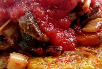- Para preparar la salsa trituramos los tomates junto con la sal, orégano y albahaca. Se puede agregar a la sartén con las verduras y calentarla o se puede calentar aparte y servir con las verduras por separado.