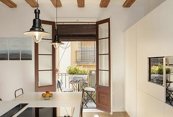 Y es que, viviendas maravillosas como este precioso apartamento de 112 m2 situado en el coqueto barrio de El Born, en Barcelona, en un edificio reformado que data de 1895, no abundan.
