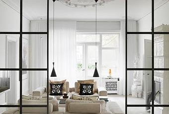 Estamos acostumbrados a la DECO nórdica cuya esencia es el estilo desenfadado, los tips con buenas ideas, el diseño lowcost y, por supuesto, los interiores en blanco. Eso nos encanta, ya lo sabéis, sin embargo, hoy nos apetecía una casa con un punto elegante y un mucho de glamur. Techos altísimos, molduras, tejidos aterciopelados y chenillas para tapizar sofás, complementos deco sencillos y lámparas ideales... Estos son algunos de los elementos que nos enamoran de este apartamento. Por supuesto, la luz, el blanco y la comunicación entre los espacios, también nos encantan! Quién no sueña con alguno de los rincones de esta casa...?? (la bañera...!!! Queremos esa bañera!! jajaja!).