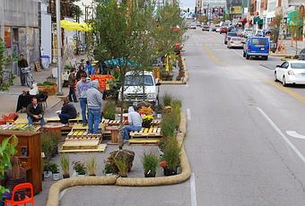 Imagen: Intervención de Better Block Project en Kansas City, Estados Unidos (fuente: http://dc.streetsblog.org/)