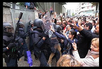 La Policía Nacional cargando contra los manifestantes en Gerona, España
