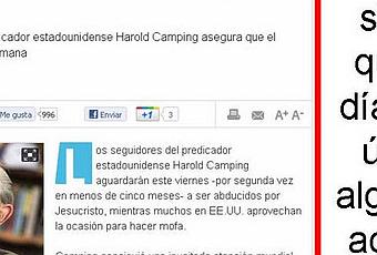 Se trata esta vez del predicador Harold Camping de USA que insiste -no es la primera vez que lo anuncia- y seguramente en un par de meses volverá a insistir que el mundo terminará el próximo viernes 21 de octubre.