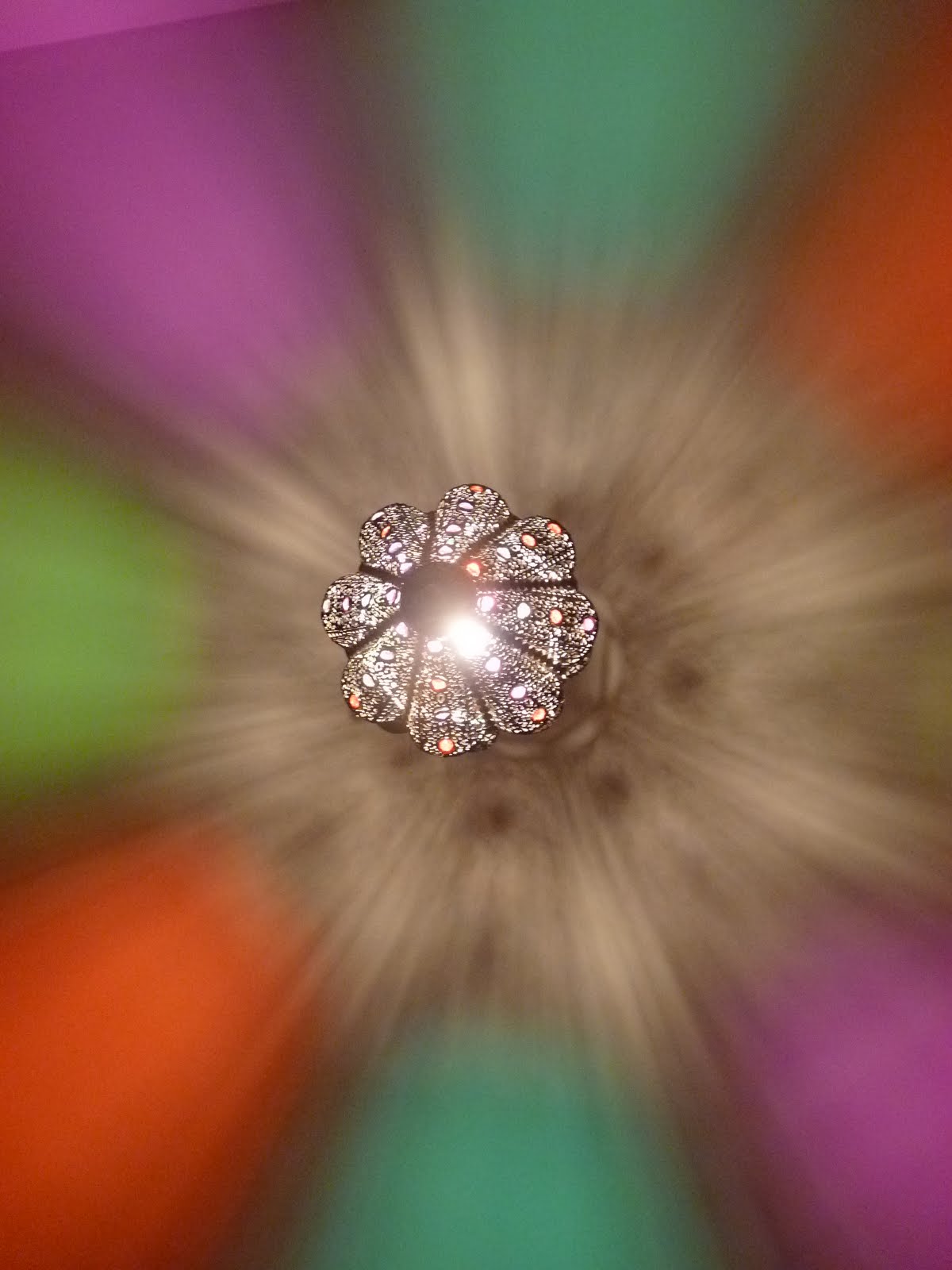 Mmm...desde aquí podemos divisar la lámpara del salón , estoy deseando adentrarme y descubrir esa mezcla de objetos tan original...
