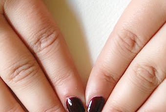 ¿Cómo se hace? El pulgar lo pintamos de color burdeos y luego con ayuda de un pincel de nail art pintamos una línea en diagonal a lo largo de la uña. A partir de esa línea vamos pintando otras paralelas o perpendiculares, a nuestro gusto.