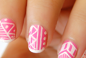 Esta vez he recreado una manicura tribal con colores de verano. También se le conoce al estampado como maya o azteca (yo ni idea) y se ha visto mucho durante las últimas temporadas. Collares y faldas es lo que abunda, pero también he visto bolsos (me enamoré de uno de Blanco) y uñas, ¡muchas uñas!