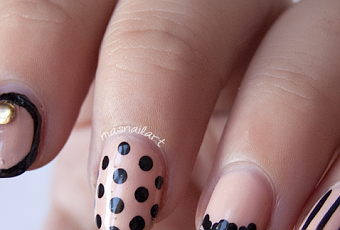 Me hice una manicura mix and match en color nude con detalles negros, tachuela y perlas, que cuando llegó al evento ya estaba un poco deslucida porque le di algo de trote a las manos esos días previos, pero bueno, ¡yo os la enseño igual! Las fotos son del Domingo y están aún en peor estado, pero creo que aún no se ven tan mal en fotografías :) Por cierto, ¡quedarían monísimas también en blanco!