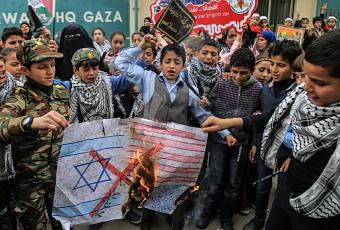 - El jardín de infantes al-Huda de Gaza, el cual es operado por la asociación islámica Dar al-Huda que se identifica con la Yihad Islámica en Palestina, exhibió una presentación en la que los niños del jardín de infantes representaban a musulmanes rezando en el Monte del Templo bajo la vigilancia de las fuerzas de seguridad israelíes. Durante la presentación, los musulmanes se apoderan de las armas de las fuerzas de seguridad, matan a los soldados y luego agitan banderas palestinas y carteles que dicen: “Jerusalén es nuestra” (página Facebook del jardín de infantes islámico al-Huda, 19 de diciembre de 2017).