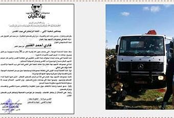 A la derecha: El camión por medio del cual fue realizado el atentado (página facebook QUDSN, 8 de enero de 2017). A la izquierda: Mensaje asumiendo la responsabilidad por parte de una organización que se hace llamar a sí misma “Gupo del “shahid” (mártir) Baha Alian”. El mensaje fue publicado en la página facebook QUDSN que señala que la verdad del mensaje no había sido verificada (página facebook QUDSN, 9 de enero de 2017)