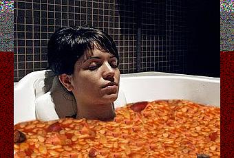 "Garantizamos a nuestros clientes que meterse en un baño caliente de alubias, morcilla, chorizo y tocino proporciona sensaciones únicas que no habían experimentado antes".