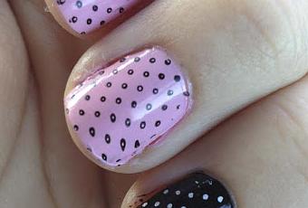 Una combinación que siempre me ha gustado es el negro con el rosa bebé y en esta ocasión he combinado estos dos colores para hacerme una manicura con topos, que me encantan :)