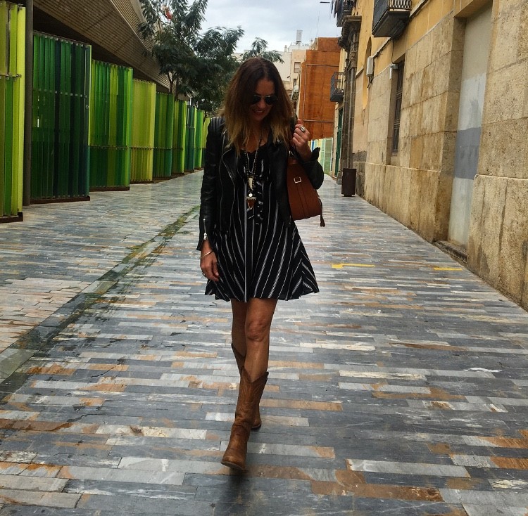 nOuNI 2 ... La mezcla de negros y marrones me chifla desde siempre, y en este Nouni mezclo prenditas muy de vestir, con moteras y western . Me súper encantan las perfectos , ya lo sabéis de sobra, y no me canso ni me cansare en la vida de ellas. Ahora parece una promesa que todas harían , pero cuando empecé a llevarlas os puedo asegurar que me miraban con cara rara. El vestido es de Amuse Society , como muy clásico por el print que tiene.