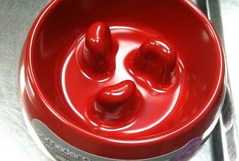 En mas de una ocasión nos habeis llegado a la clínica comentandonos que vuestro perro o gato come muy deprisa, ingiriendo aire y minutos despues vomita, mas bien regurgita diría yo, pues en el mercado ha salido un comedero que intenta evitar esta ingesta rápida. El recipiente está diseñado con 3 apéndices que condicionan el acceso de su perro a una cantidad desmesurada de alimento. De este modo comerá más despacio y porciones más pequeñas en cada mordida evitando indigestiones, torsiones de estómago y vómitos.
