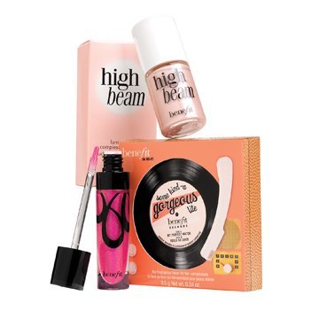 El kit incluye:Incluye este bolsito "vintage".-Some kind-a gorgeous lite.-Iluminador High Beam.-Lip gloss "Back to the fuchsia".